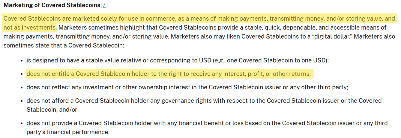 Negli Stati Uniti, le stablecoin (come USDC) non possono pagare interessi poiché, come ha ribadito la SEC, sono “strumenti di pagamento, non di investimento”.