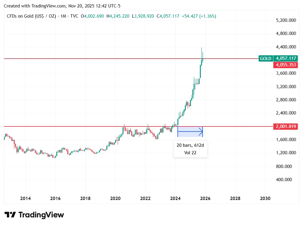 Nel 2025 l’oro ha superato per la prima volta nella storia i 4.000 dollari l’oncia, stabilendo oltre 40 nuovi massimi storici in un solo anno.