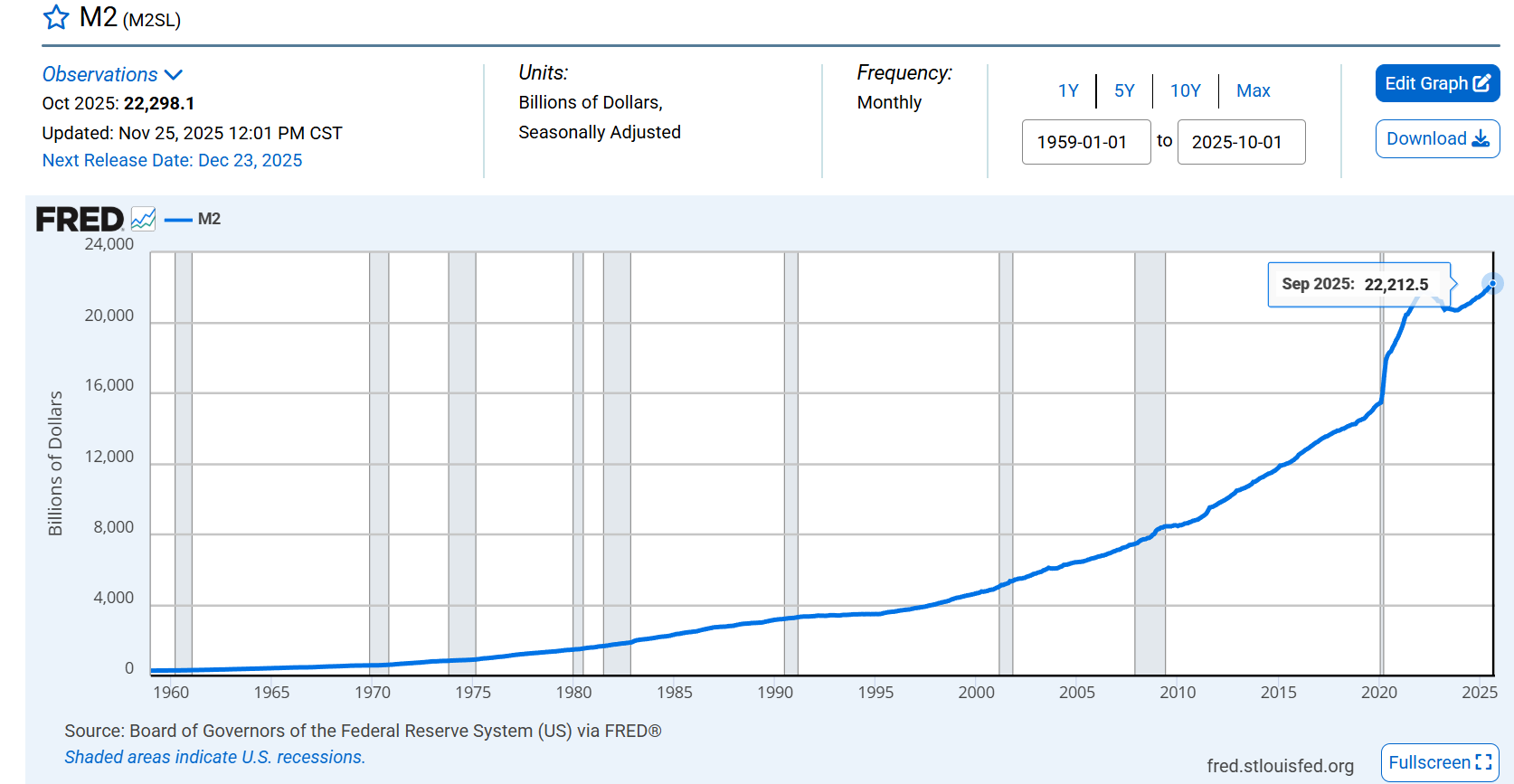 L’M2 (cioè l’offerta di moneta circolante) è tornata sopra i $21 trilioni, mentre parallelamente il potere d’acquisto del dollaro è crollato circa del 46% dal 2000.