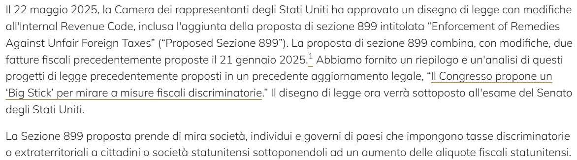 Nella stessa proposta di legge infatti figurava anche una sezione chiamata “899”, una tassa punitiva contro quei Paesi che impongono tasse digitali “ingiuste” alle aziende americane.
