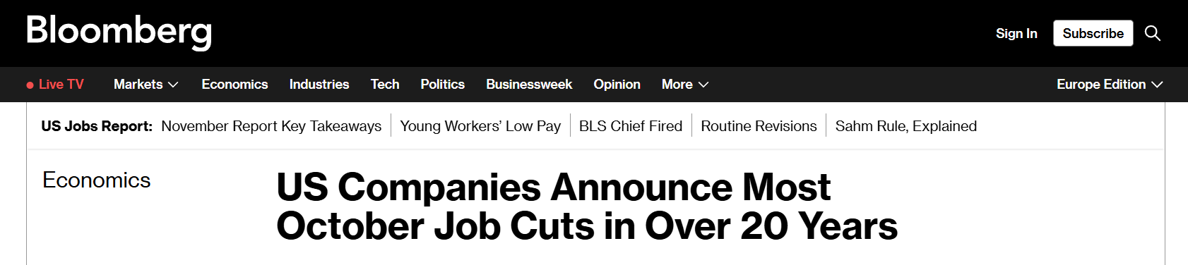 Ottobre 2025 è stato il peggior mese per i licenziamenti negli ultimi 20 anni.